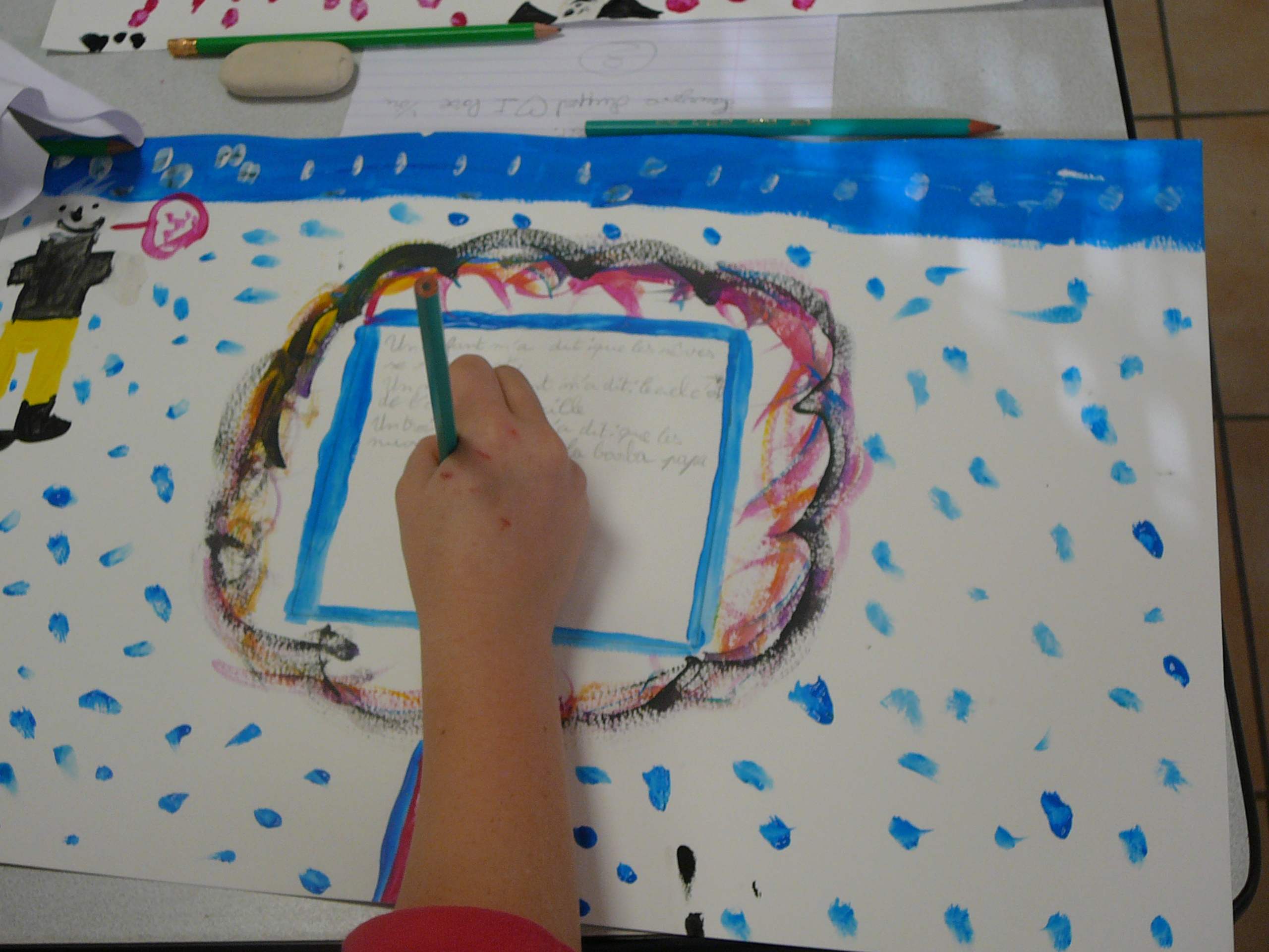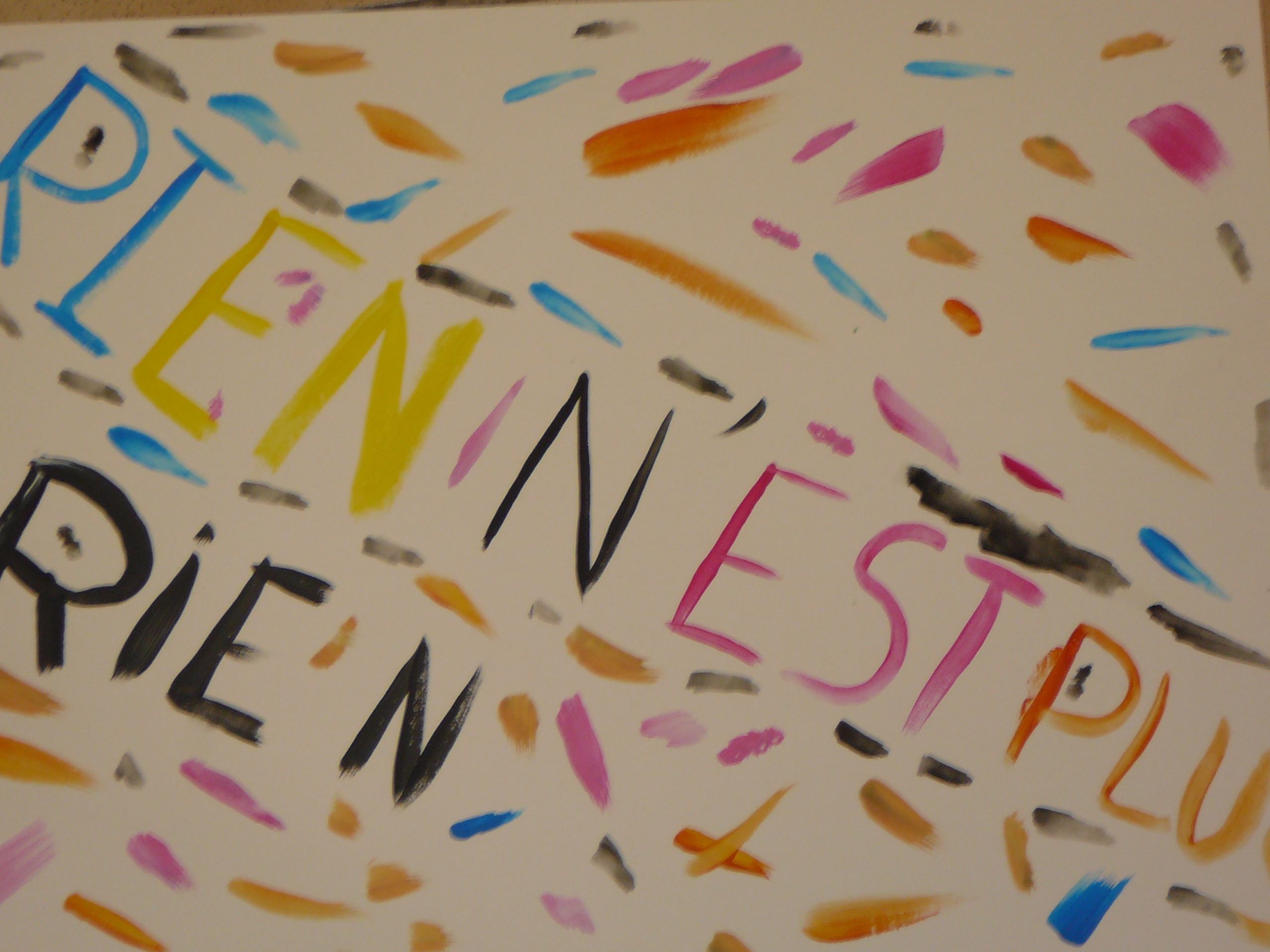 Durant ces ateliers, des poèmes ont été écrits puis présentés sous forme d’affiches lors d’ateliers d’art plastique en collaboration avec le peintre Zeillim.