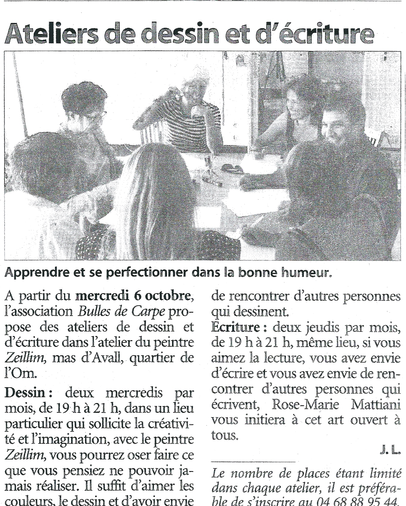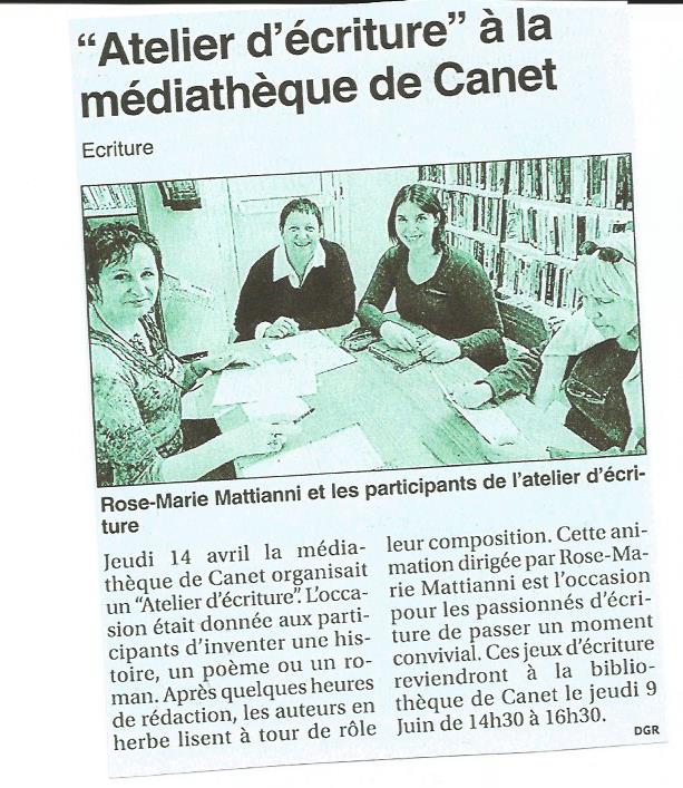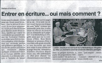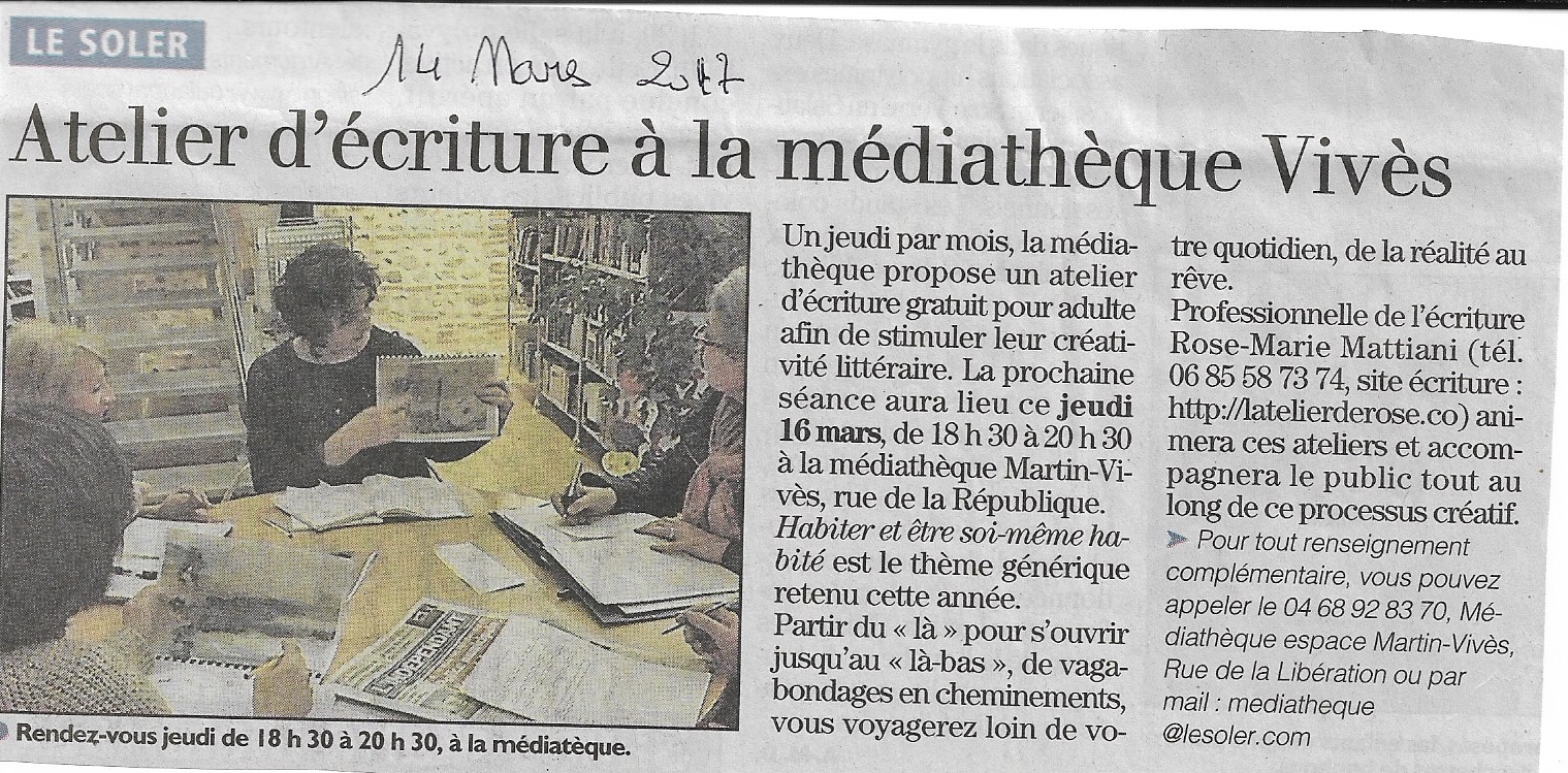 Ateliers d’ECRITURE à la Mediathèque de canet en roussillon