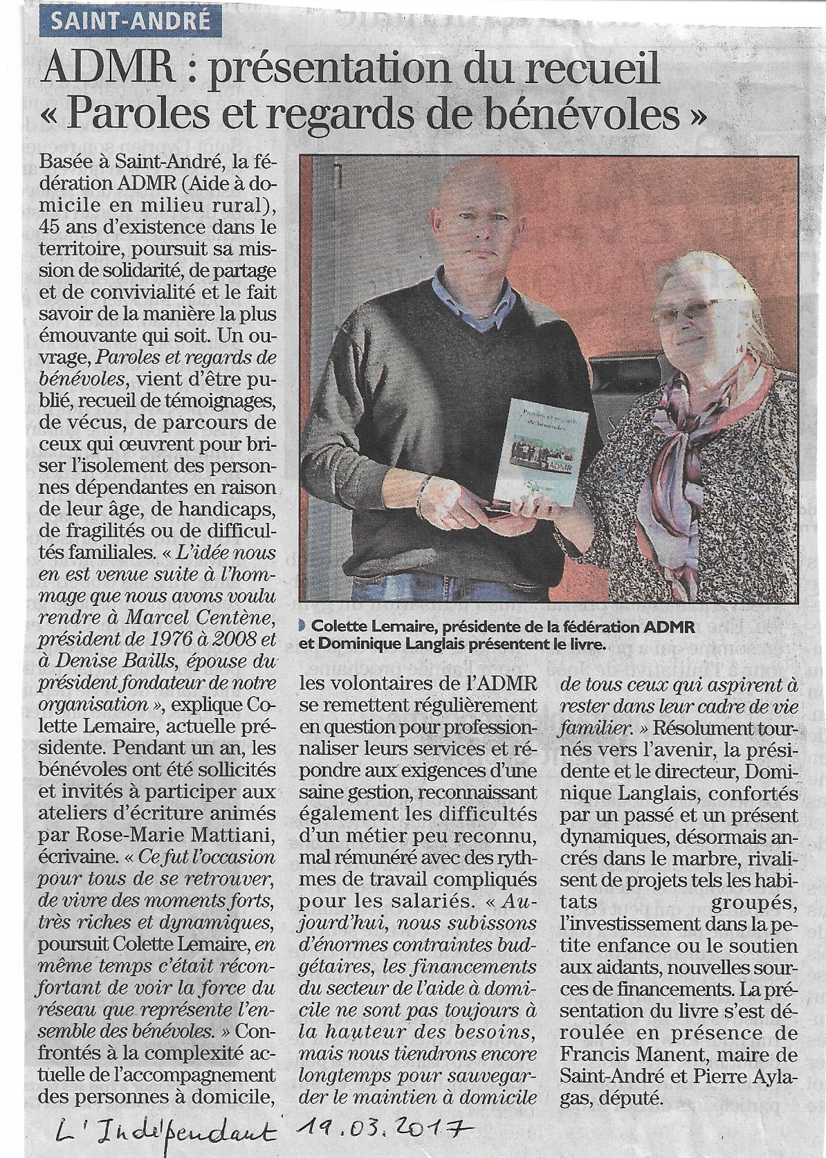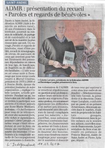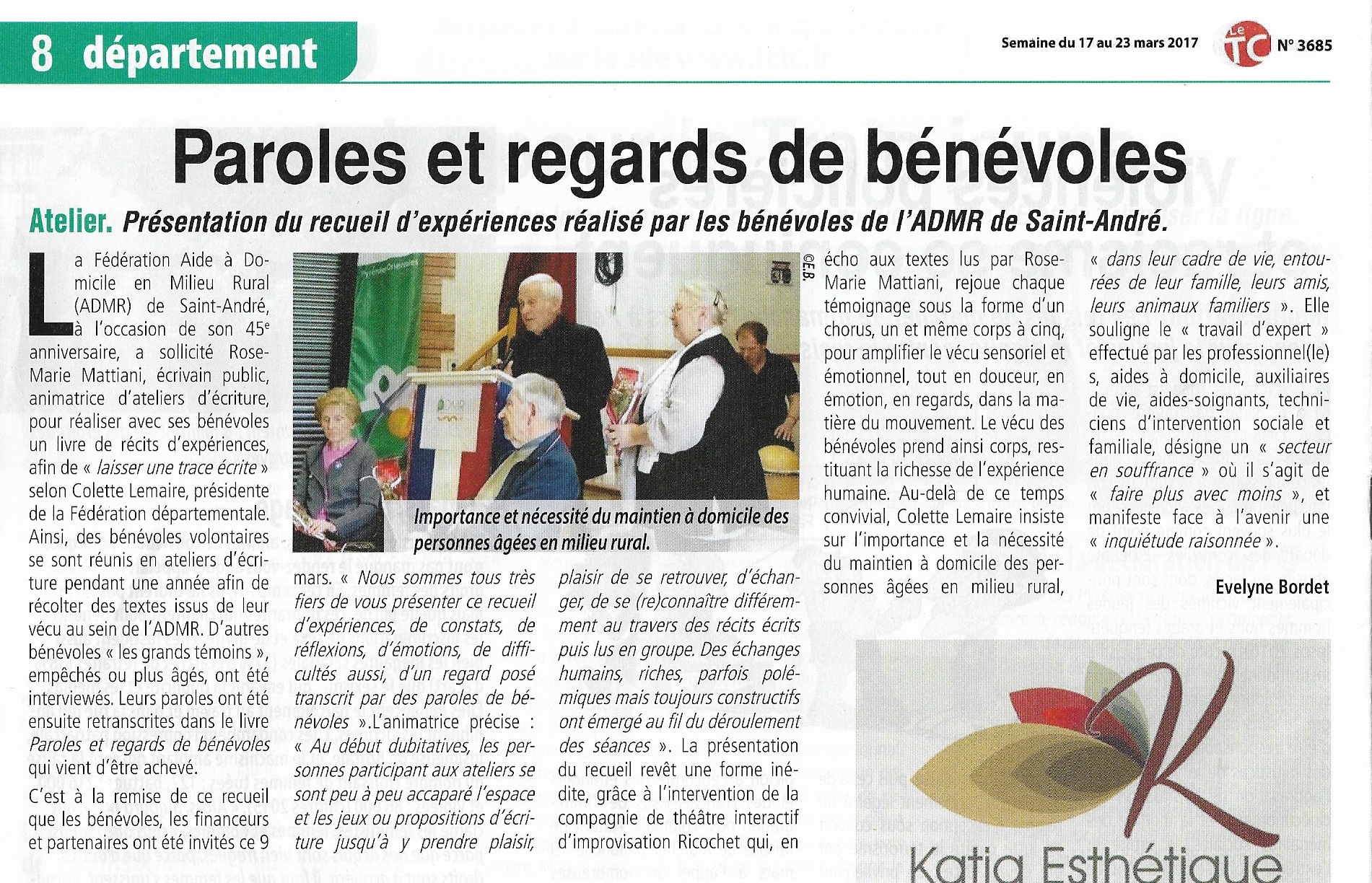 Présentation du livre « Paroles et regards de bénévoles » pour et avec les bénévoles de l’ADMR de St André lors d’ateliers d’écriture et d’entretiens en 2017.