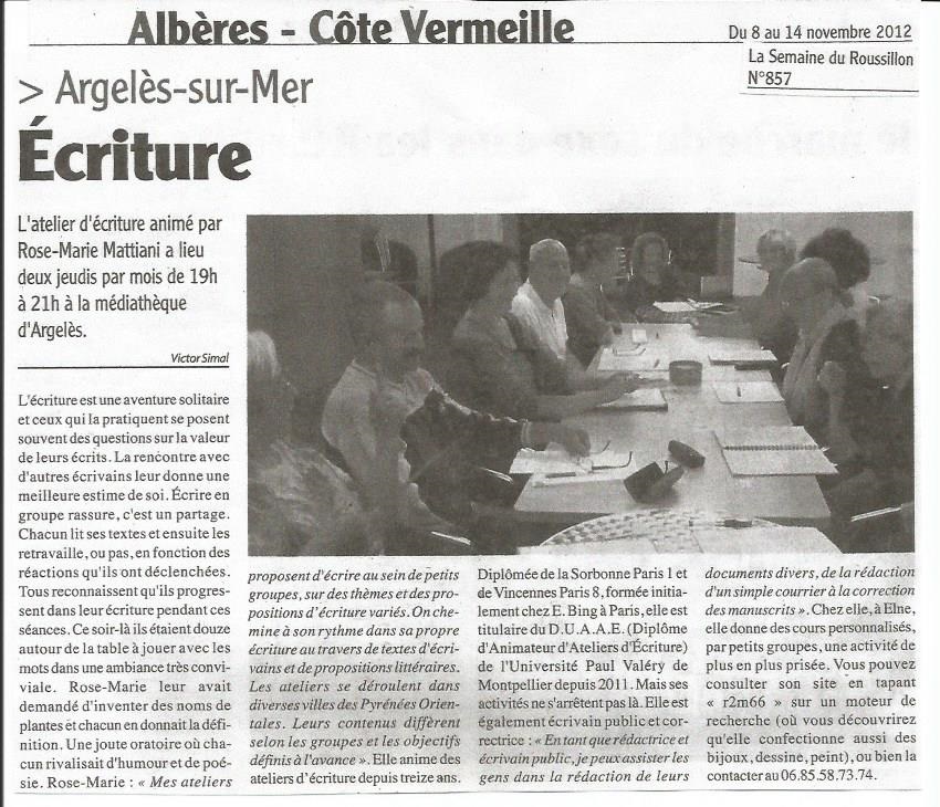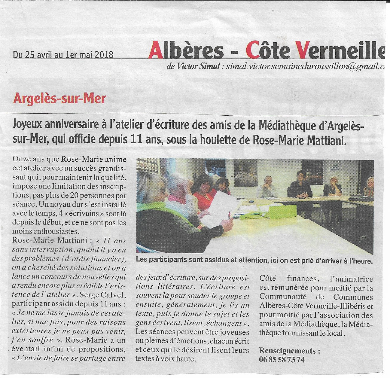 Chaque année les Médiathèques de la Communauté de Communes des Albères et l’association des Amis de la Médiathèque d’Argelès organisent un concours national de nouvelles intitulé « Les nouvelles prennent le large à Argelès ». Des participants aux ateliers d’écriture d’Argelès ou d’Elne ont remporté des prix … Bravo à eux !