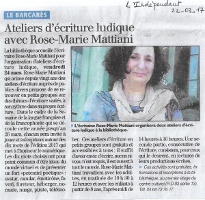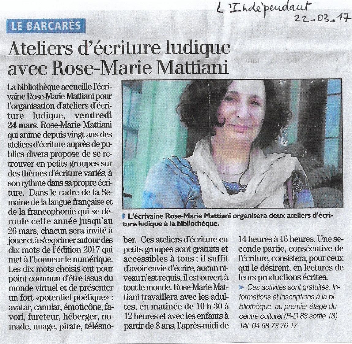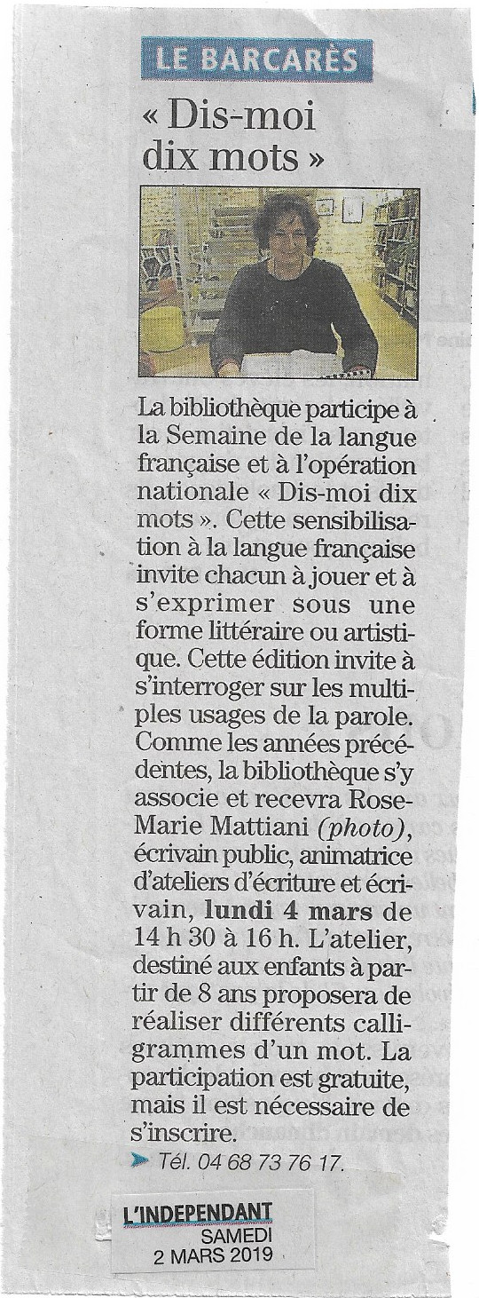 Ateliers d’écriture ludiques à la Bibliothèque Le Barcarès semaine de la langue française et de la Francophonie en 2017.