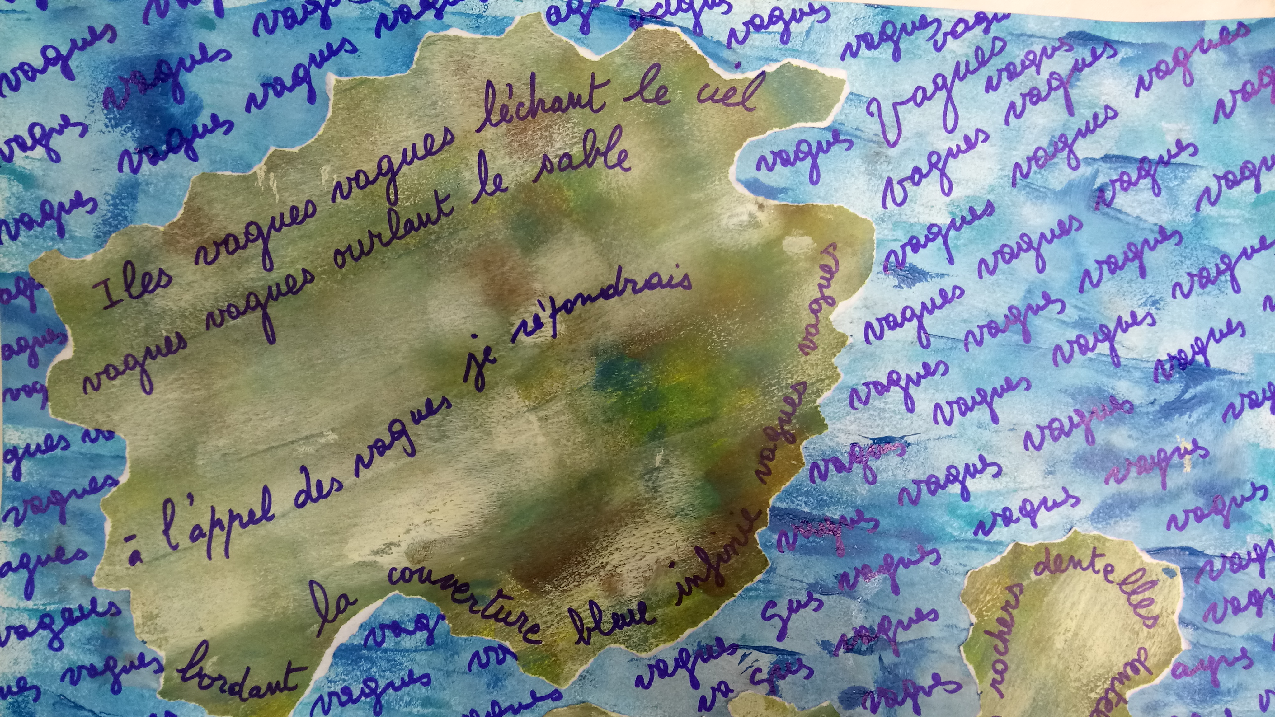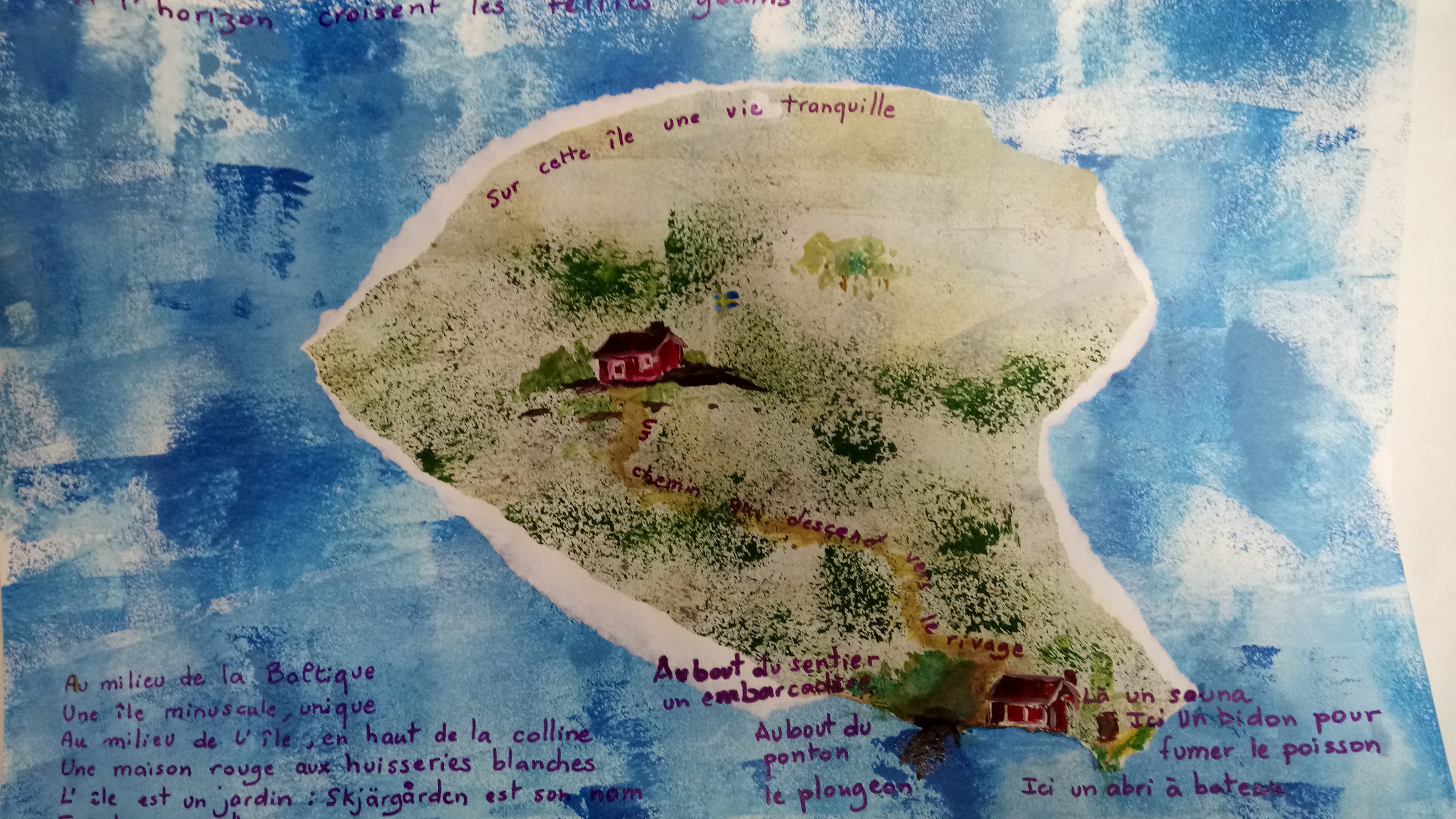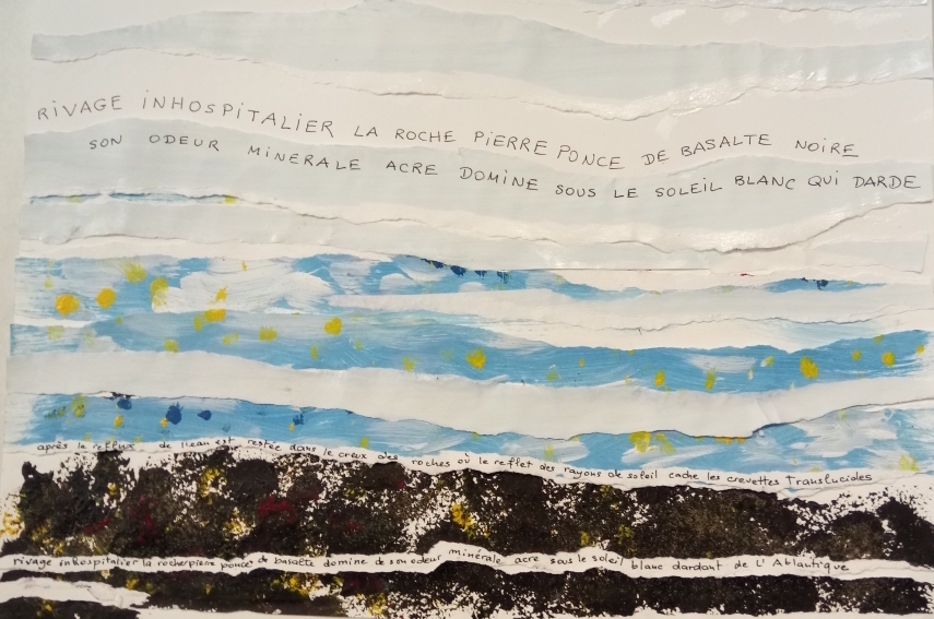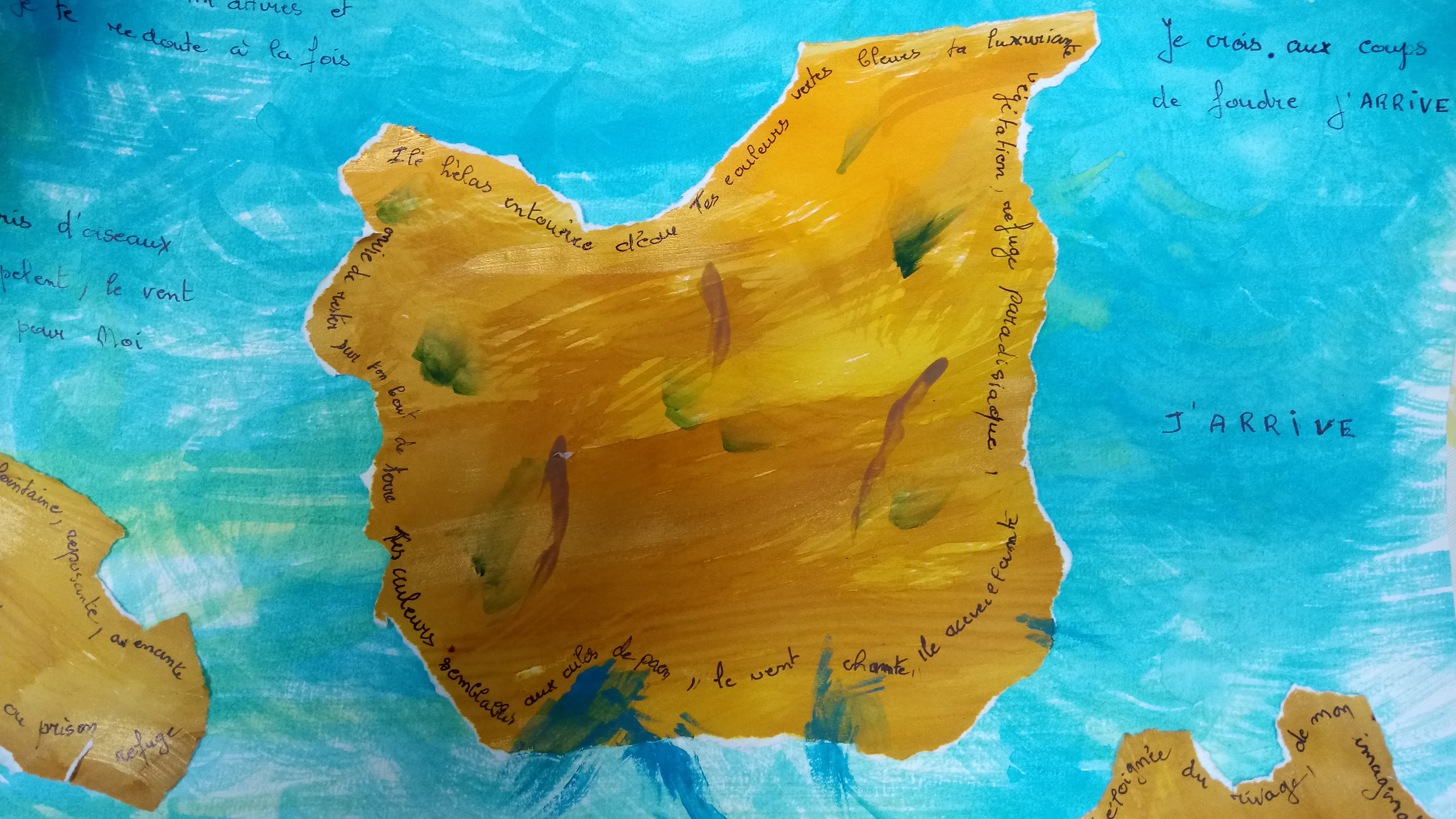 Atelier du 14.01.2017 Les îles. Textes de Blaise Cendrars, Masaoka Shiki sur la notion d’ îles… On écrit, puis on réalise une île incluant des fragments de textes.