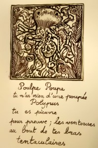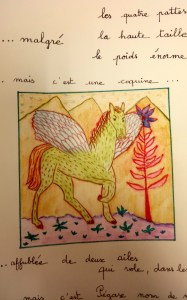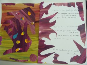 Atelier du 18.03.2017 – Le Bestiaire d’Apollinaire. Écriture de courts textes (quatrains) autour de cartes-animaux. Réalisations d’œuvres plastiques autour des textes.