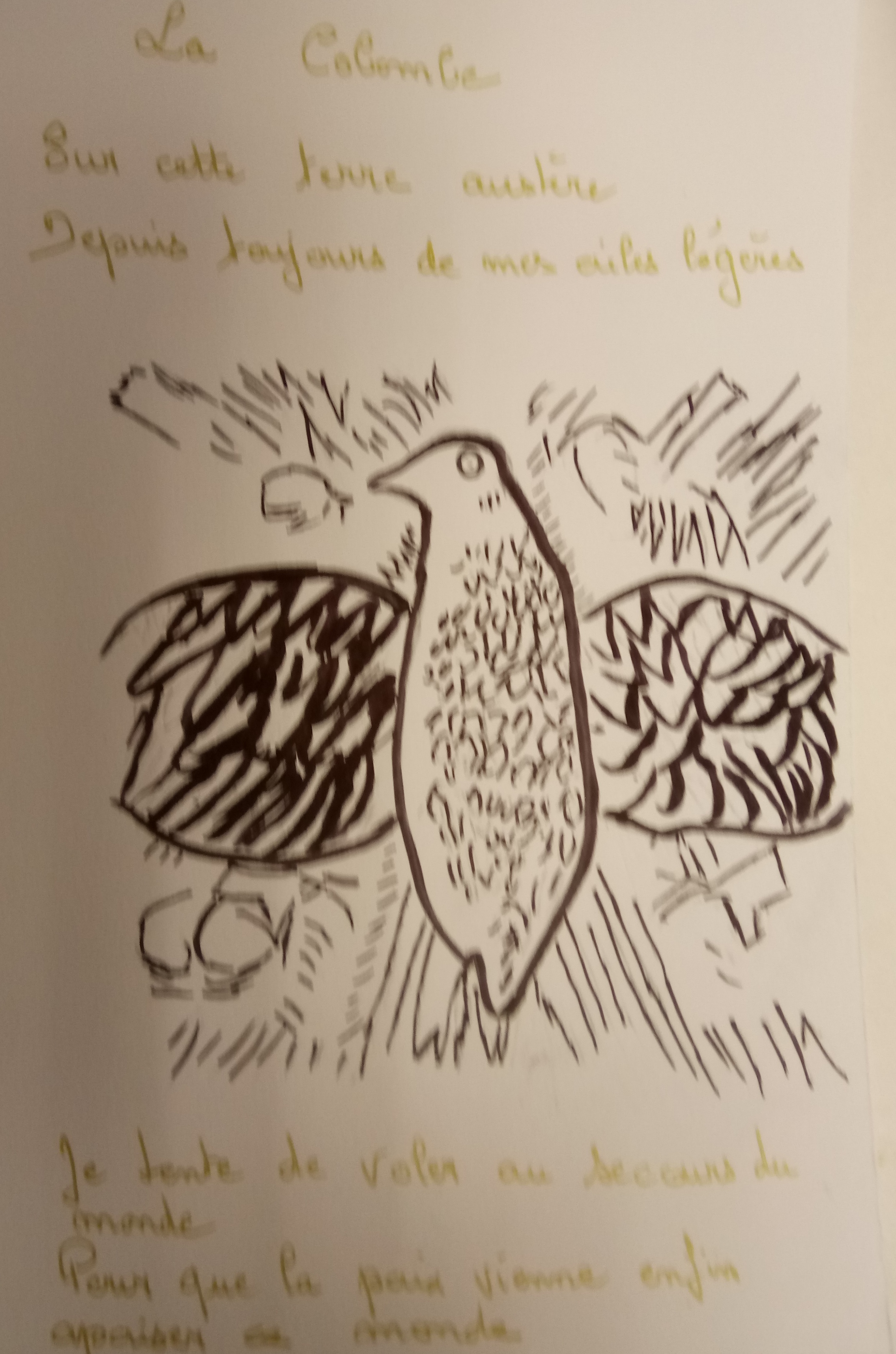 Ciel de sang / Demain / L’orage nous guette / Le vent envole tout / Fait vivre les champs de blé. (Béatrice)