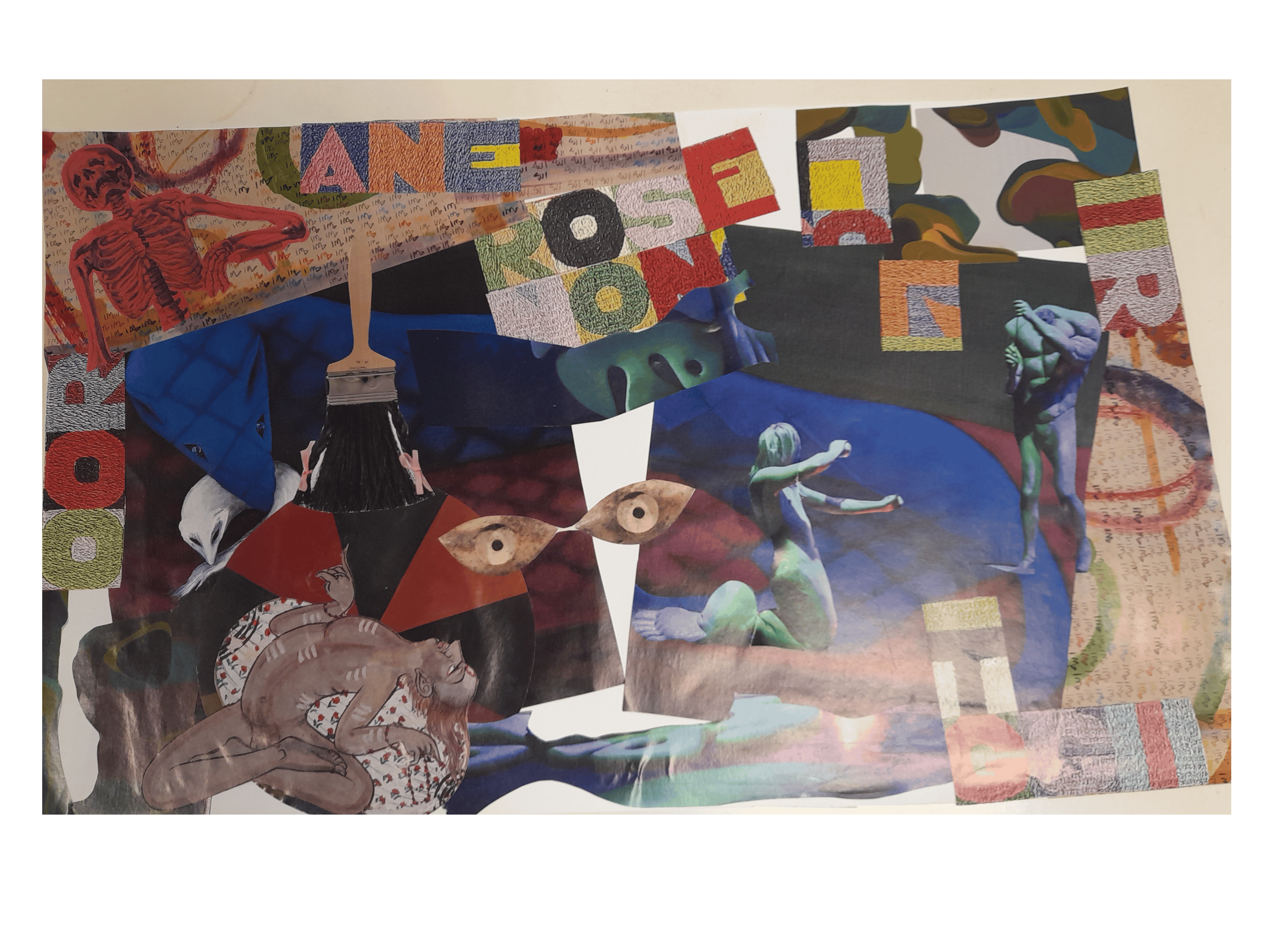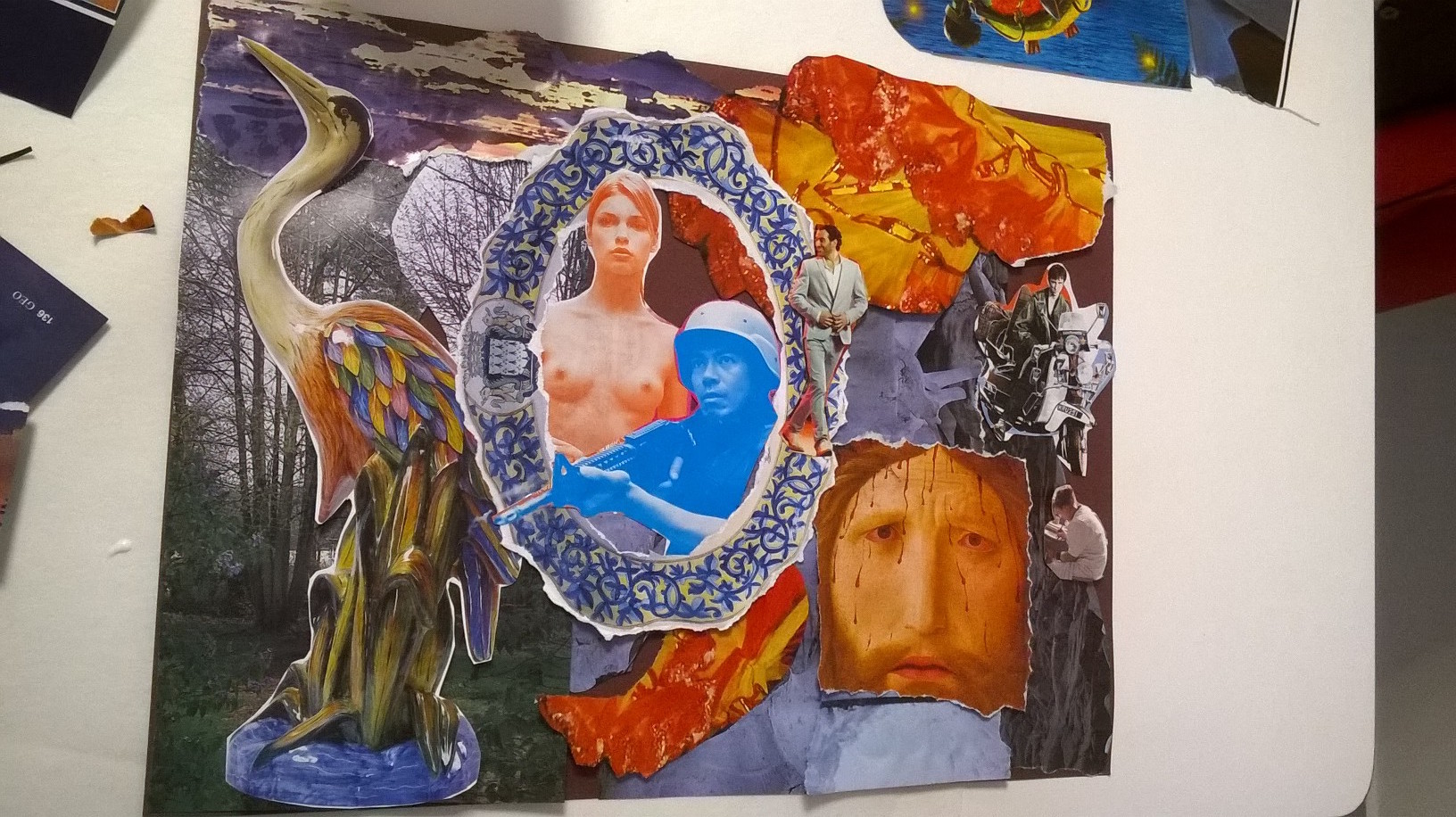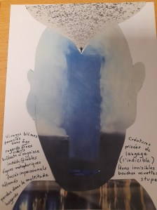 Atelier du 14.01.2017 Départ : Collages et textes de André Breton, Max Ernst, Jacques Prévert et le Surréaliste… On réalise tout d’abord un collage, puis on écrit d’après le collage du voisin et d’après le sien.