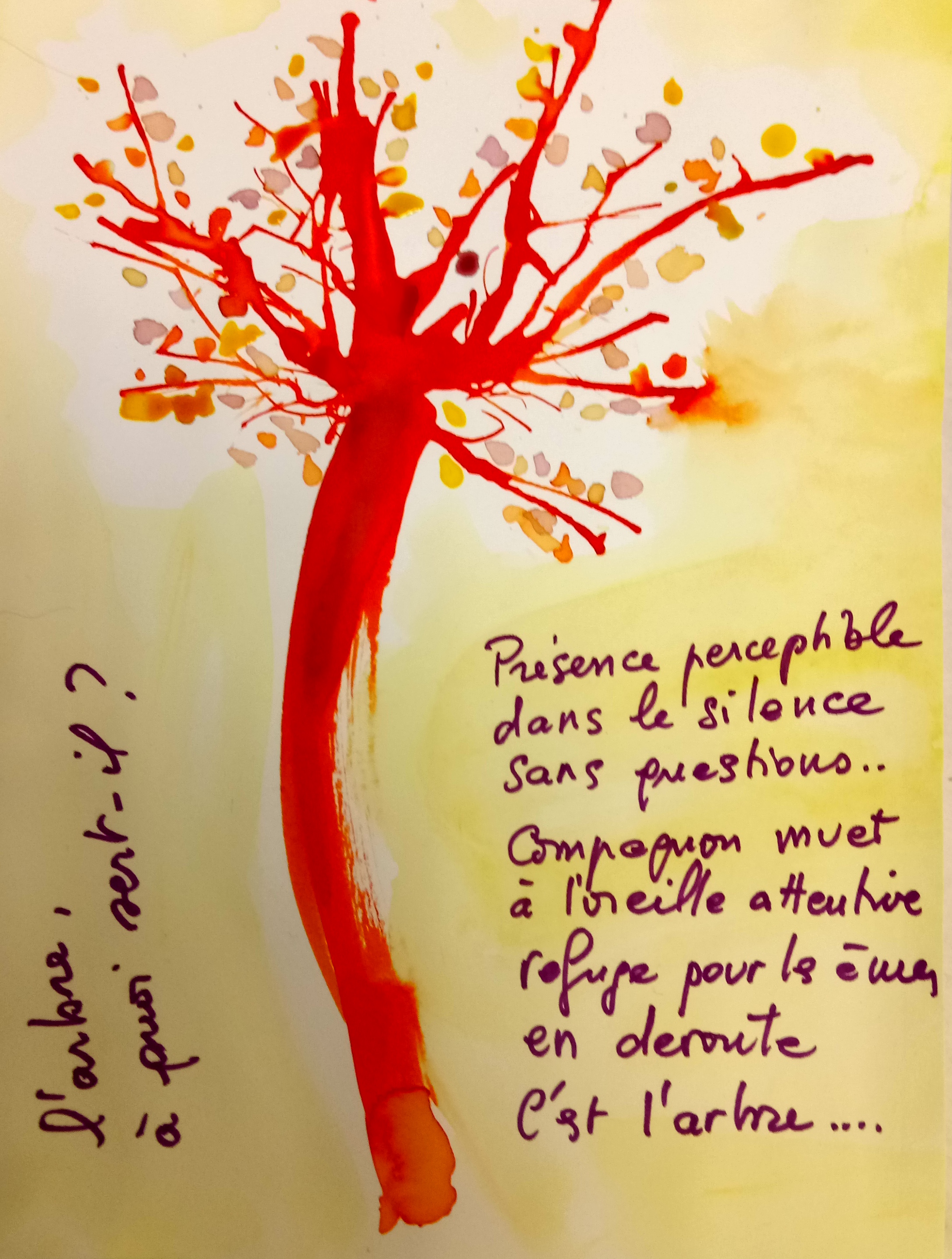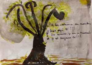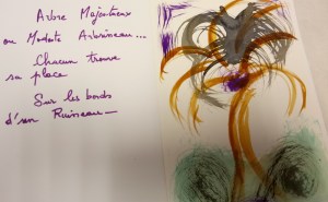 Atelier du 28.10.2017 : L’arbre. Écriture soutenue par des textes de Jules Supervielle, Fernando Pessoa, Jacques Charpentreau, des extraits de la Genèse… Séance d’arts plastiques où branches et racines se sont exprimées…