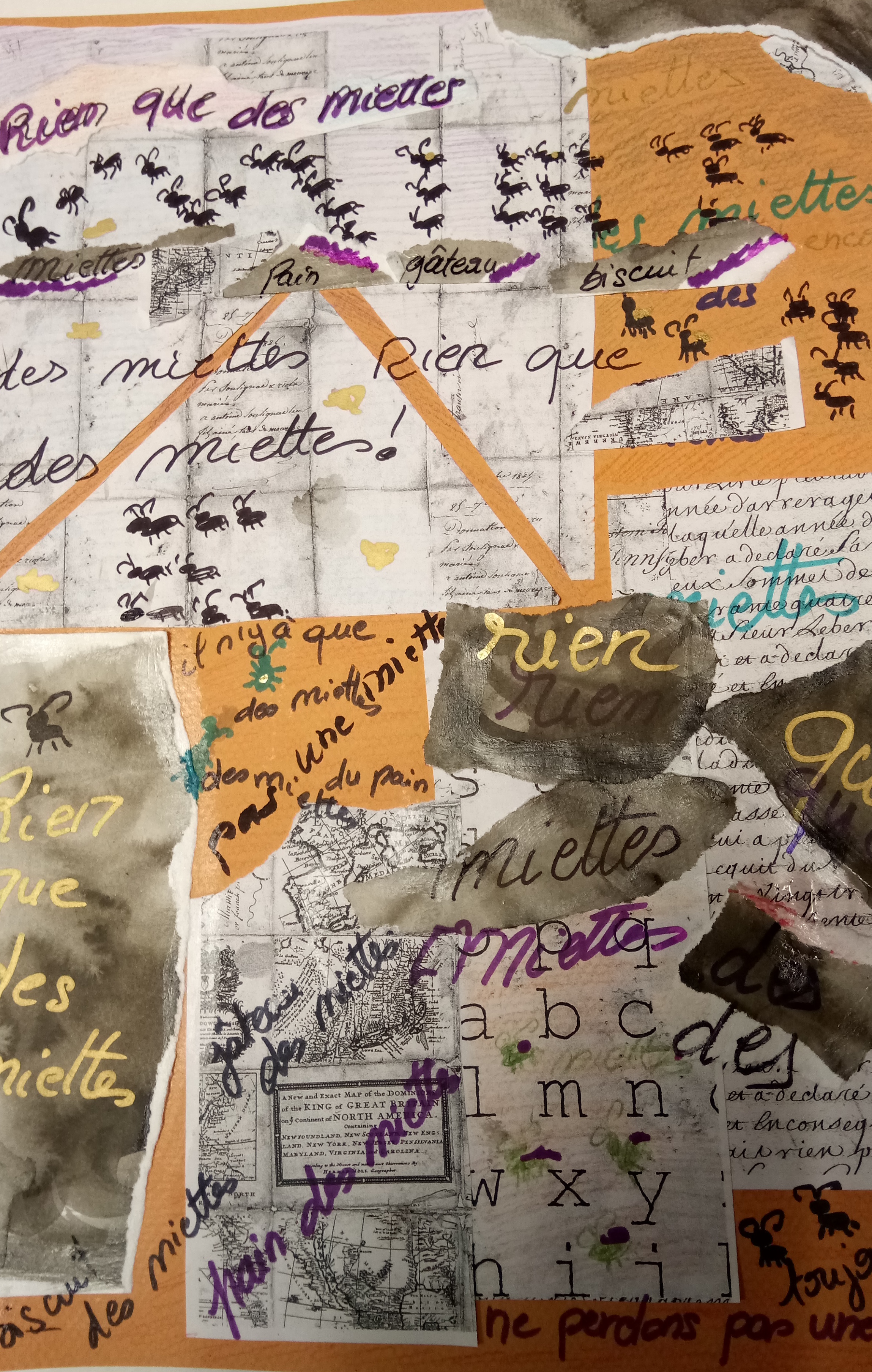 Atelier du 22 mars 2025 : « Tous collagistes ! » était le thème de l’atelier d’écriture à dess(e)in du 22 mars. Preuve en est qu’on peut faire des images avec de la colle et des paires de ciseaux… Picasso disait de Prévert, concernant ses collages : « Tu ne sais pas dessiner, tu ne sais pas peindre, mais tu es peintre ! ». Affirmation vérifiée aujourd’hui avec les participant(e)s de l’atelier. Tous collagistes ! Participant(e)s : Fred, Annie, Carine, Béatrice, Rose-Marie…