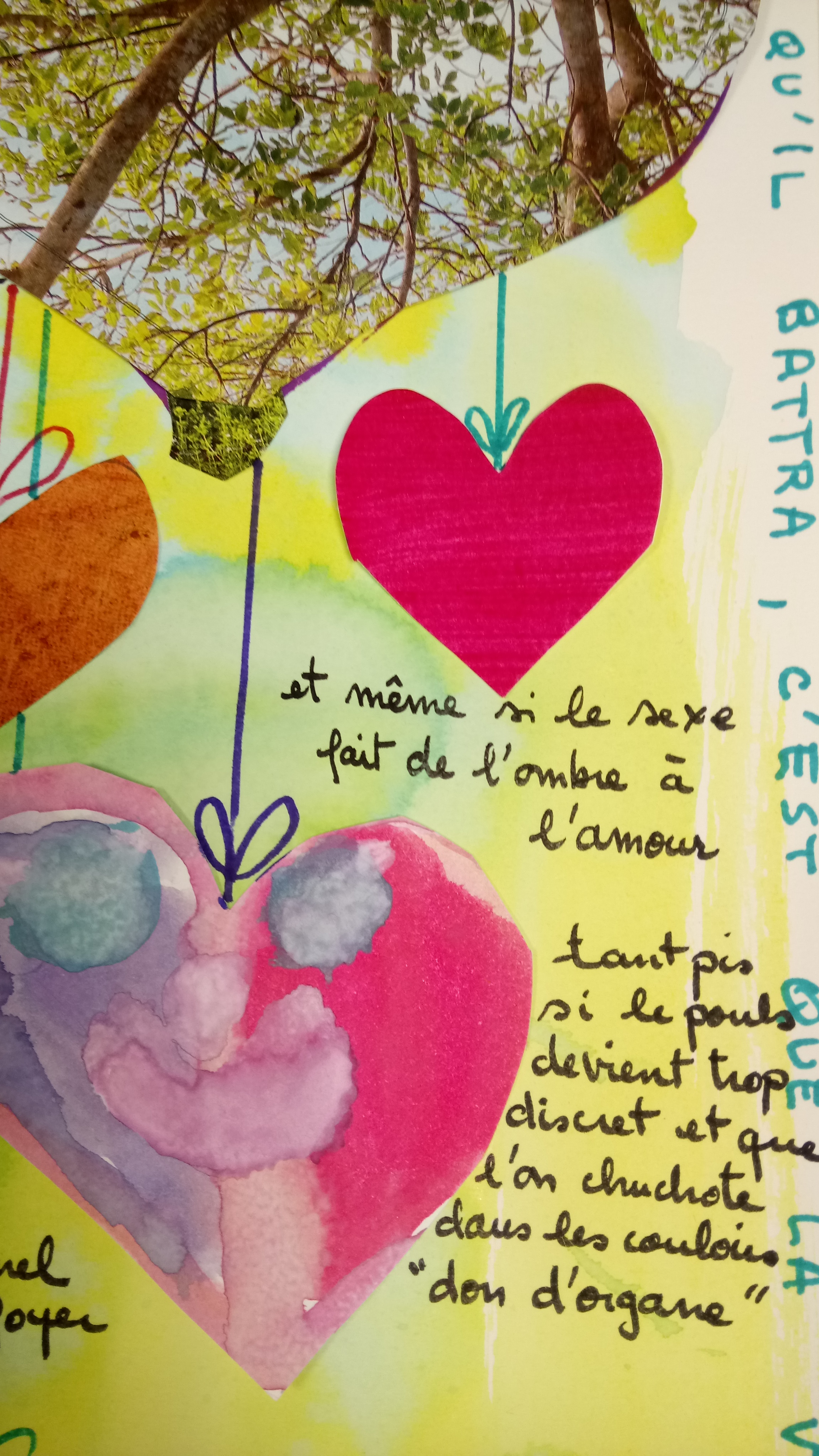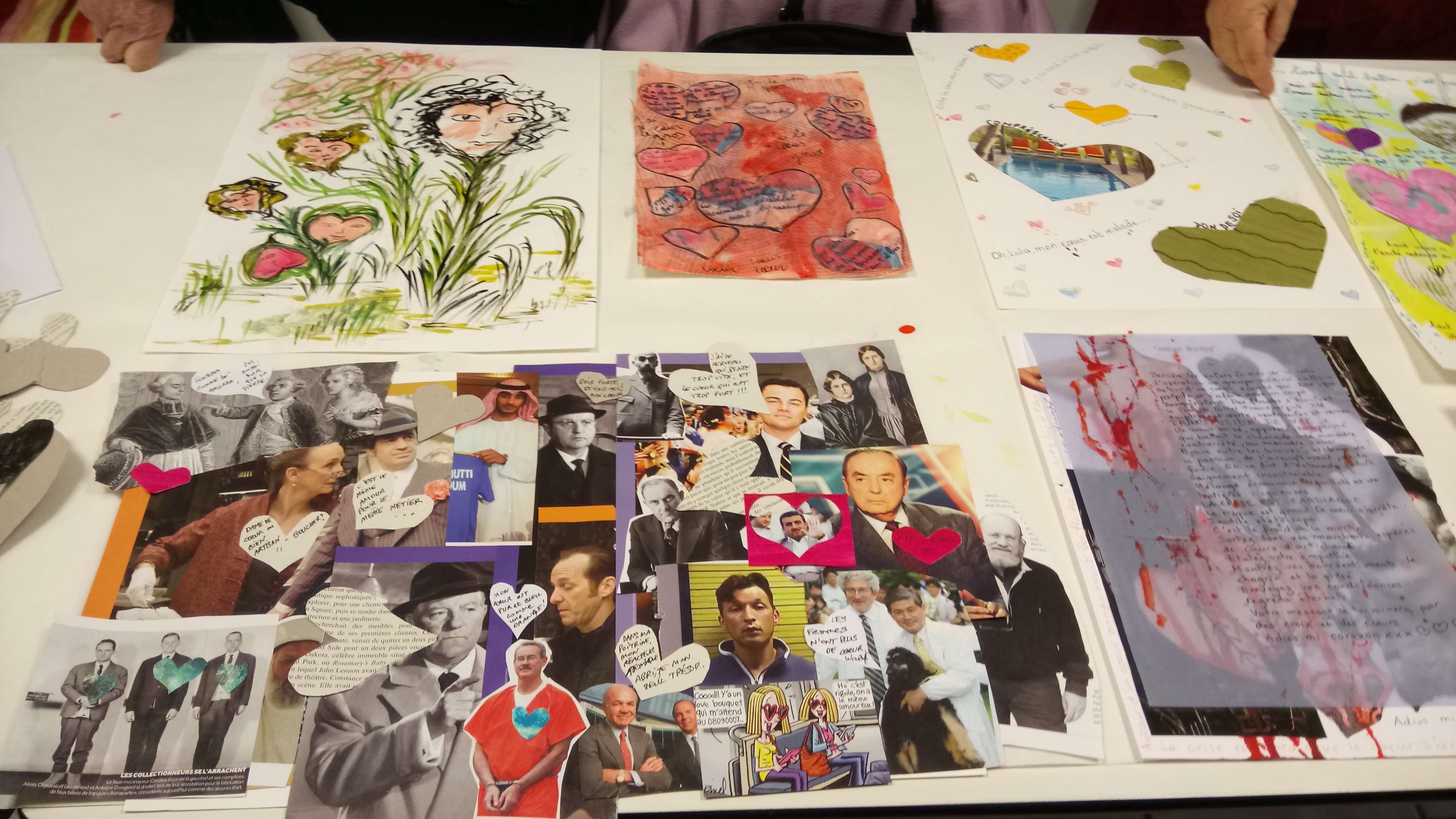 Atelier du 20.01.2018 : Le cœur. Riche en émotions, productions écrites et plastiques. Textes support : J’ai toujours ton cœur avec moi de E.E. Cummings, Il pleure dans mon cœur de Verlaine, Dans notre ville, il y a de Jacques Charpentreau, Le Cœur volé de Rimbaud.
