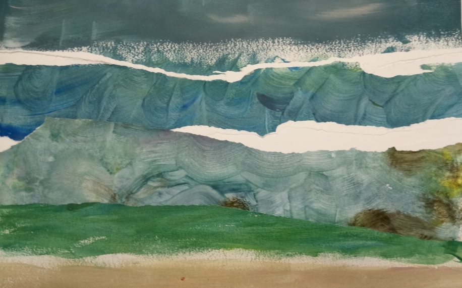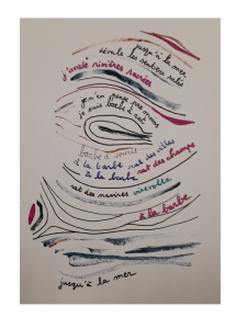 Atelier du 28.04.2018 : La mer. « Je suis entrée dans la mer jusqu’à l’endroit où la vague éclate. Il fallait traverser ce mur courbé comme une mâchoire lisse, un palais que laisse voir une gueule en train de happer, pas encore refermée. » Marguerite Duras, La vie tranquille, 1944