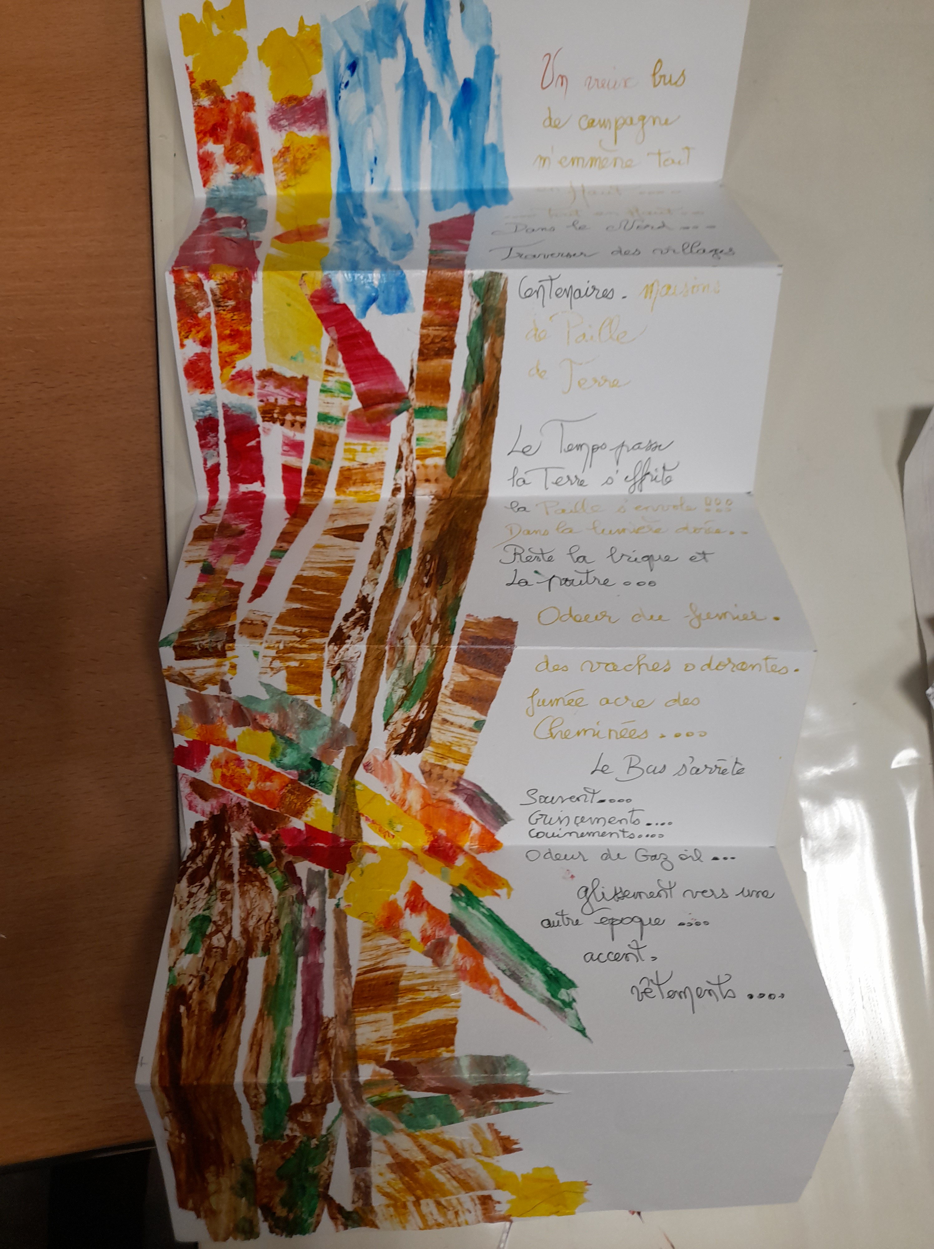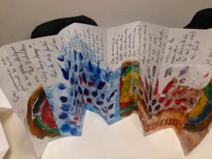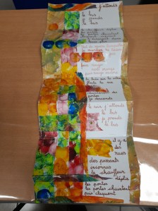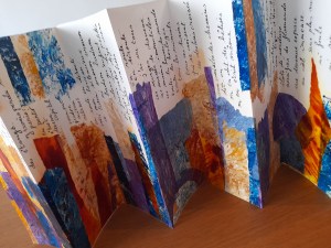 Atelier du 18 Janvier 2025 : réalisation de leporellos. Texte support : La Prose du Transsibérien de Blaise Cendrars illustré par Sonia Delaunay.