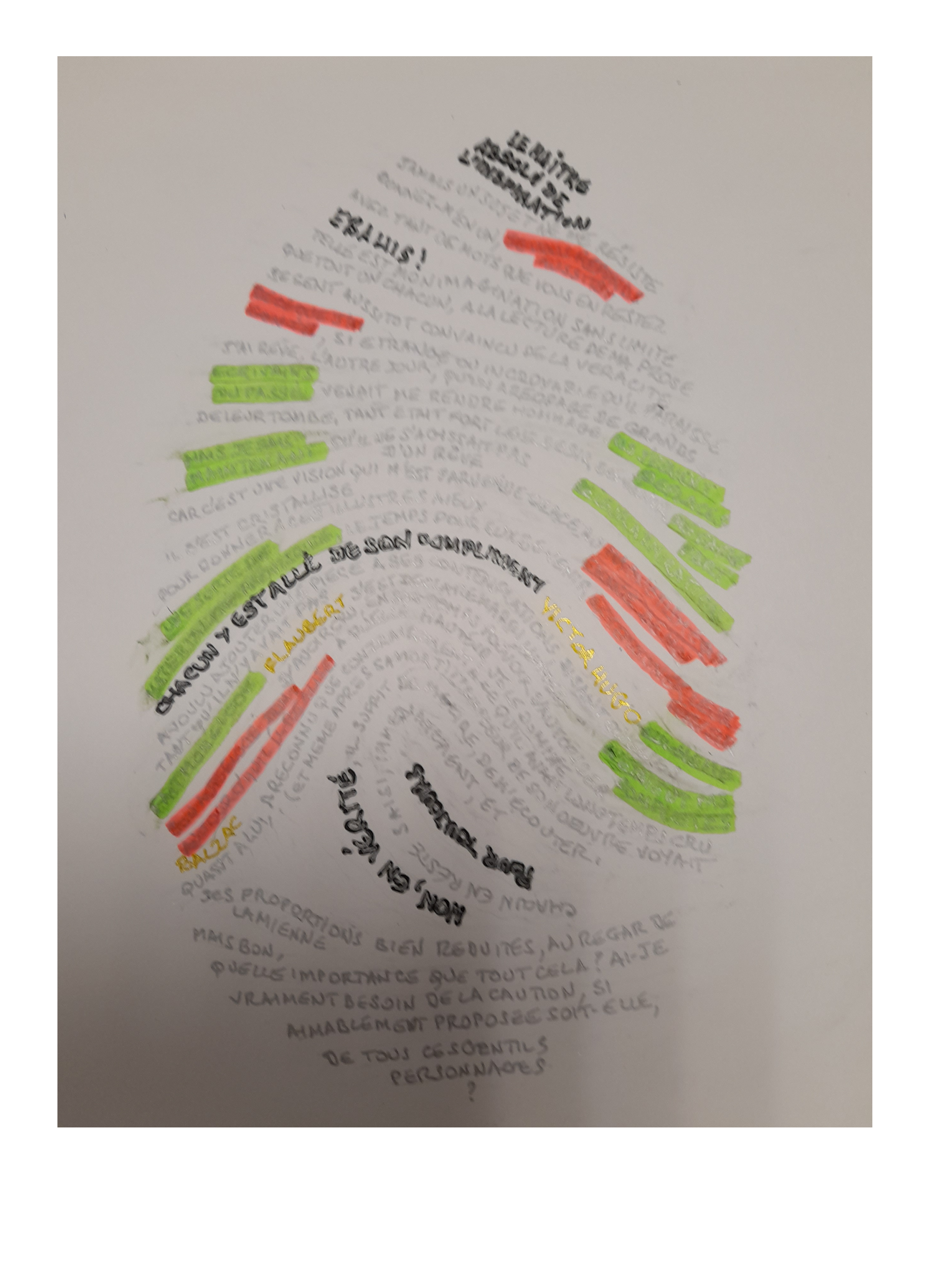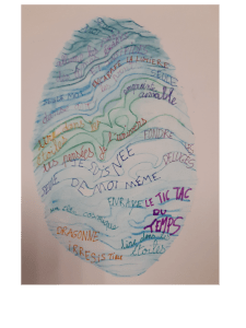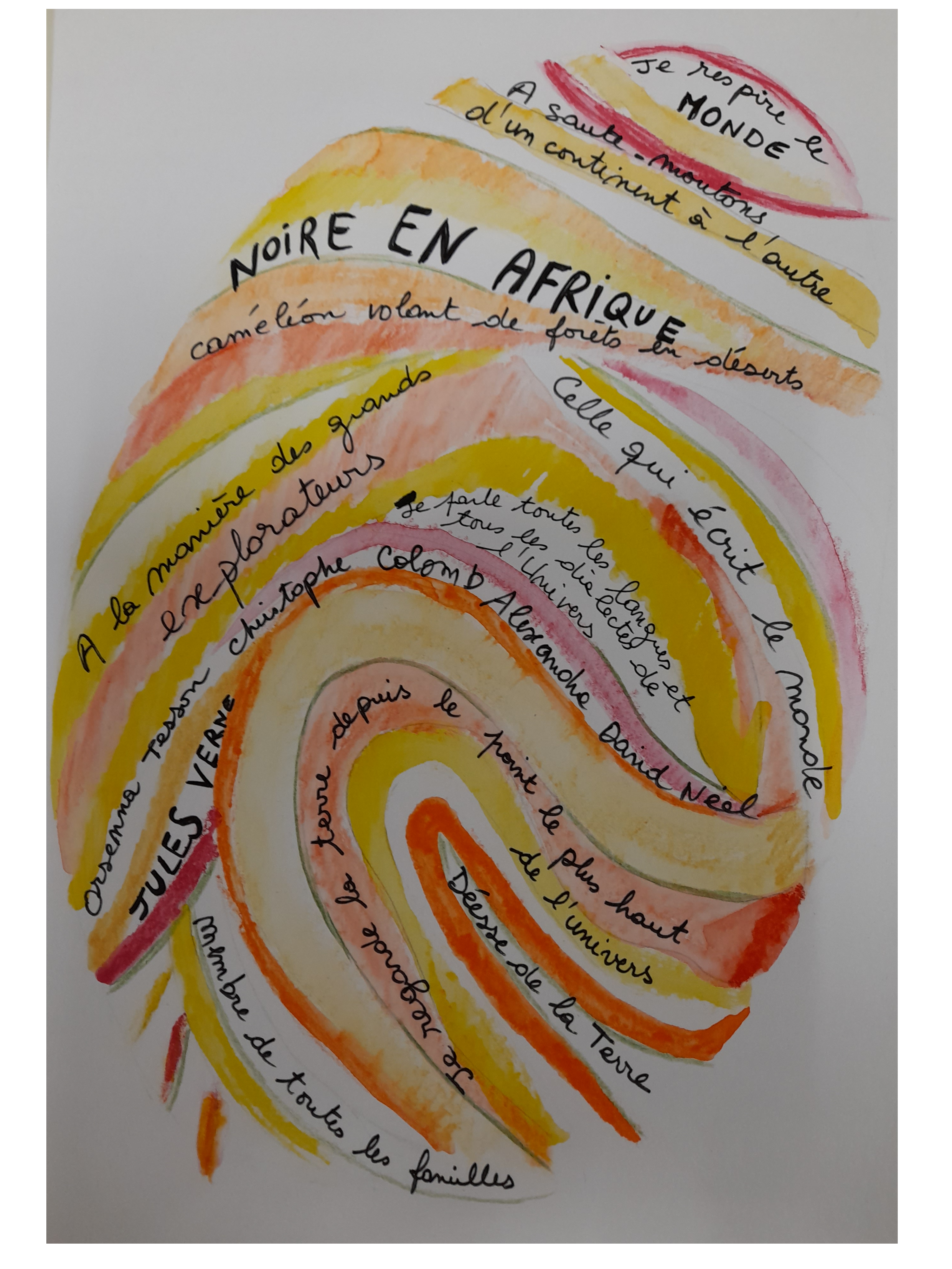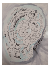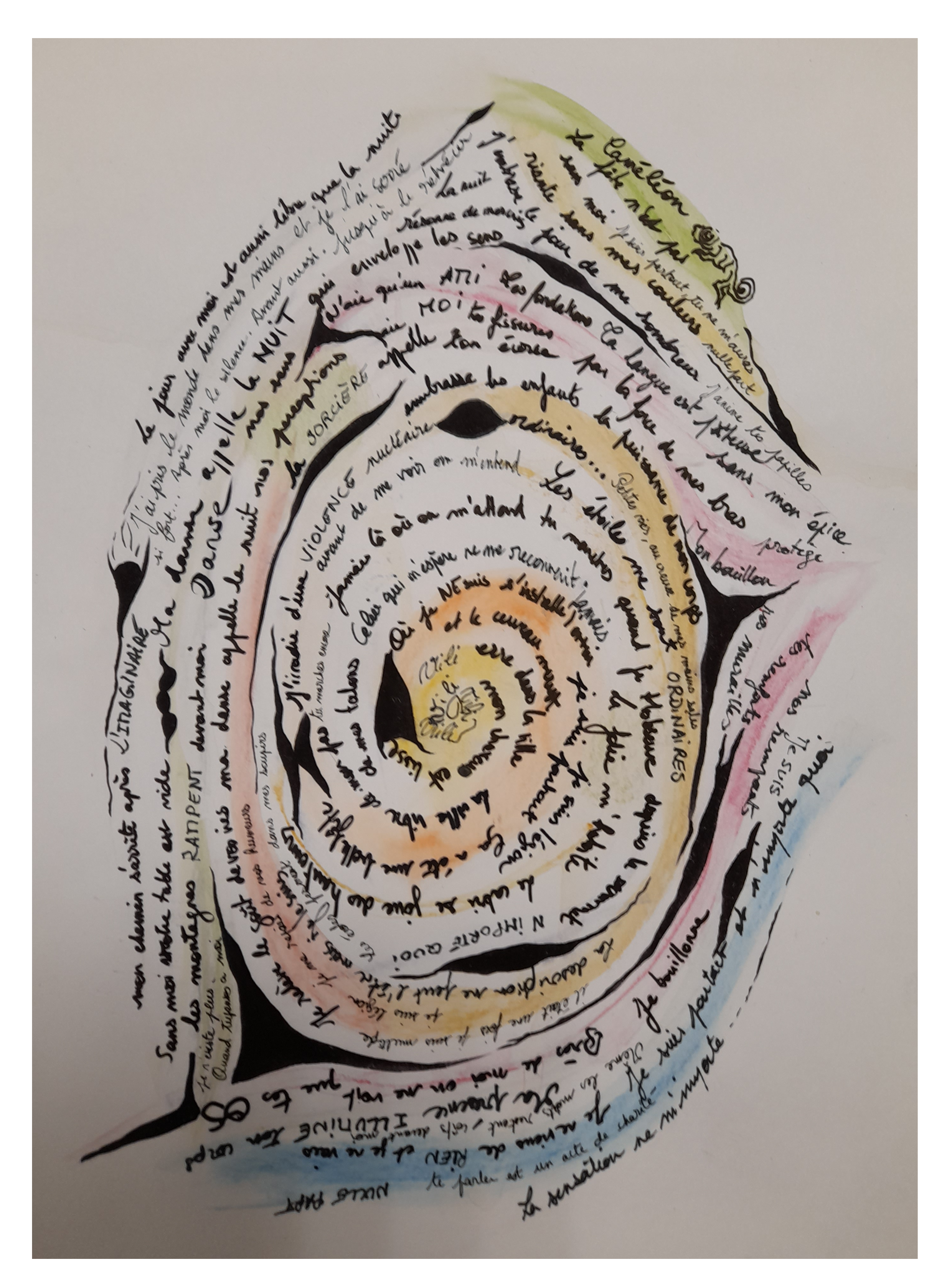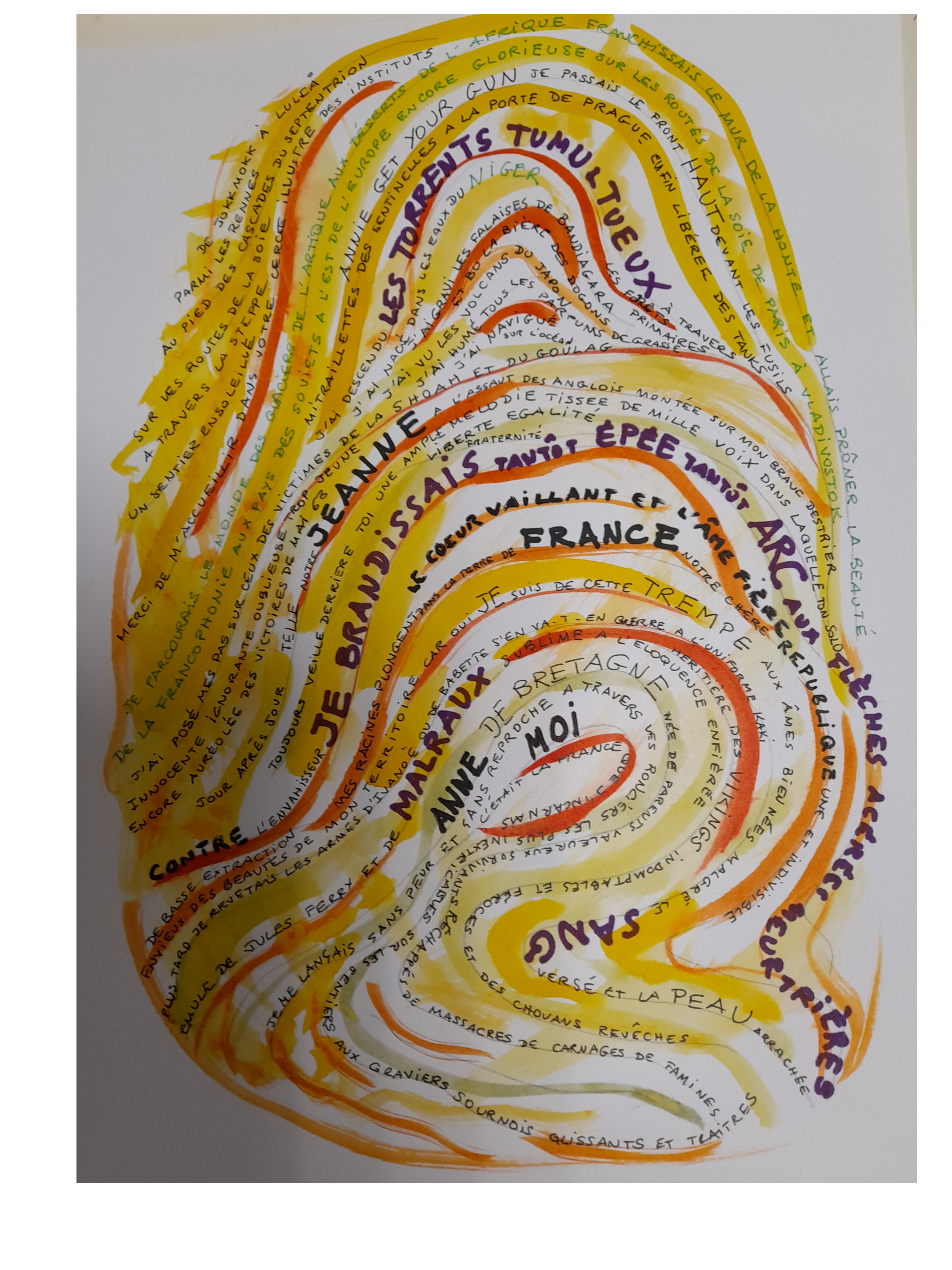 Atelier du 18.11.2017 : « Poèmes en miettes ». Textes-supports pour l’écriture de Fernando Pessoa ; Le livre de l’intranquillité, Abdellatif Laâbi ; L’arbre à poèmes, Marcel Proust ; La Recherche. L’atelier d’écriture est suivi d’un atelier d’art-plastique où écriture et graphismes se répondent…