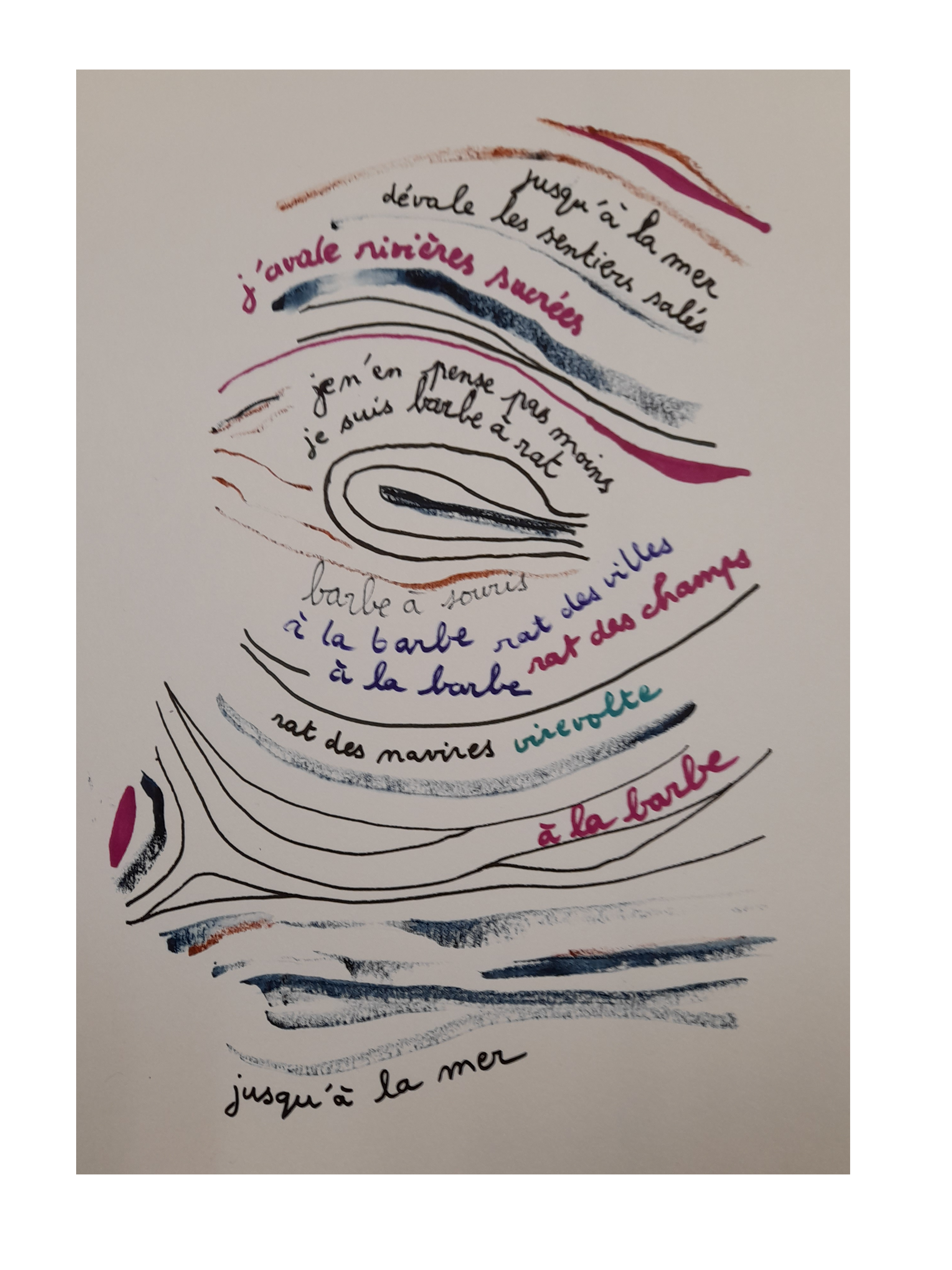Mes ateliers « Ecriture à dess(e)in » proposent d’explorer les relations entre écriture et arts-plastiques. Des ateliers d’expérimentations et de découvertes où les allers-retours entre écriture et peinture, encres, collages, pastels, crayons, fusains… sont à la base de vos futures créations. Ils sont ouverts à toute personne avec ou sans connaissances en arts ou en pratiques artistiques : accessibles à tous, il suffit d’avoir envie d’écrire et/ou de jouer avec les arts. De belles découvertes en perspectives !