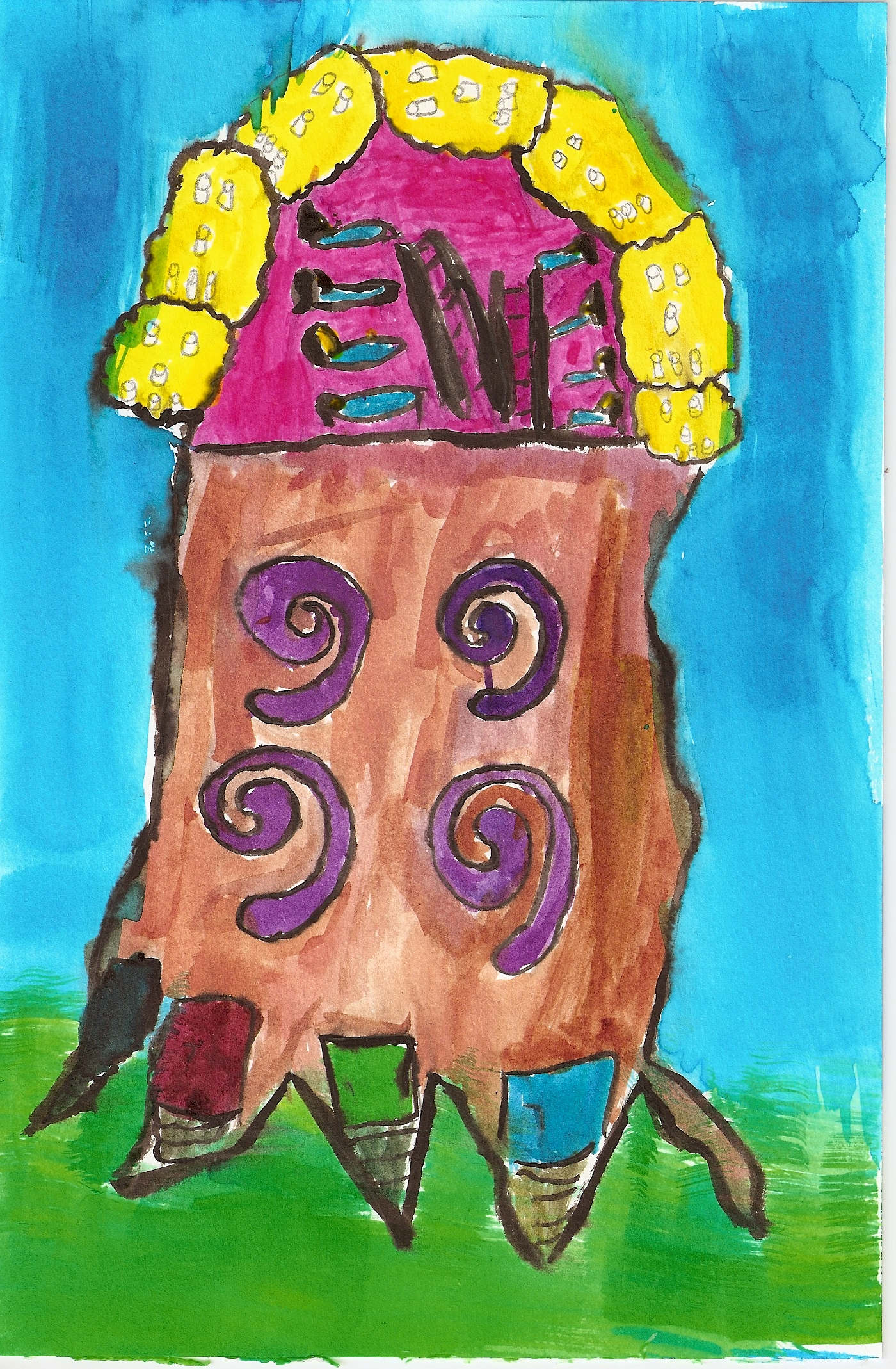 Nous avons énormément dessiné afin de définir les décors et décidé du contenu de la pièce « Le Hêtre Magique », écrite au fur et à mesure des dessins, plans, illustrations et d’improvisation théâtrales réalisés. Les improvisations et mises en scène ont toutes été encadrées par Karim Arrim.